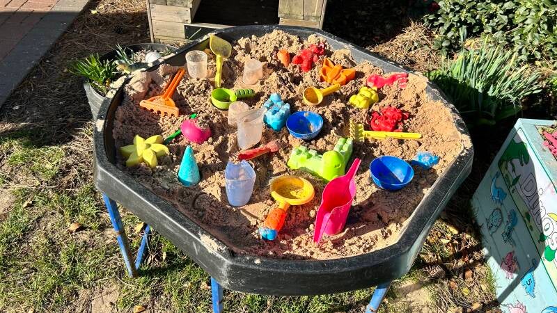 Our sand tray with different tools.